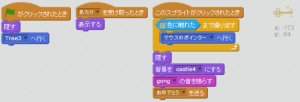 - ポイントはクローンでランダムな場所に宝物を配置させること。そして、今回はクローン毎に番号を持たせ、実行の都度アタリを変える工夫をしています。